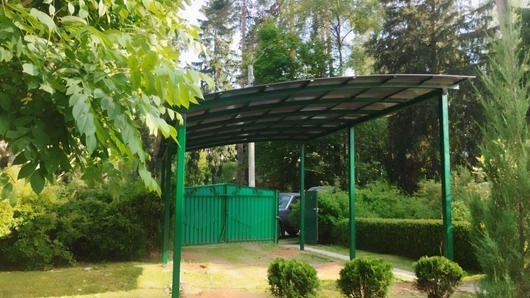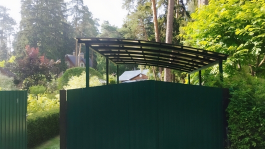 Полуарочный навес из зеленого поликарбоната для дачи Арт-667
