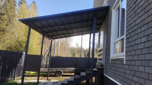 Односкатный навес-пристройка из профнастила над входом в дом Арт-718